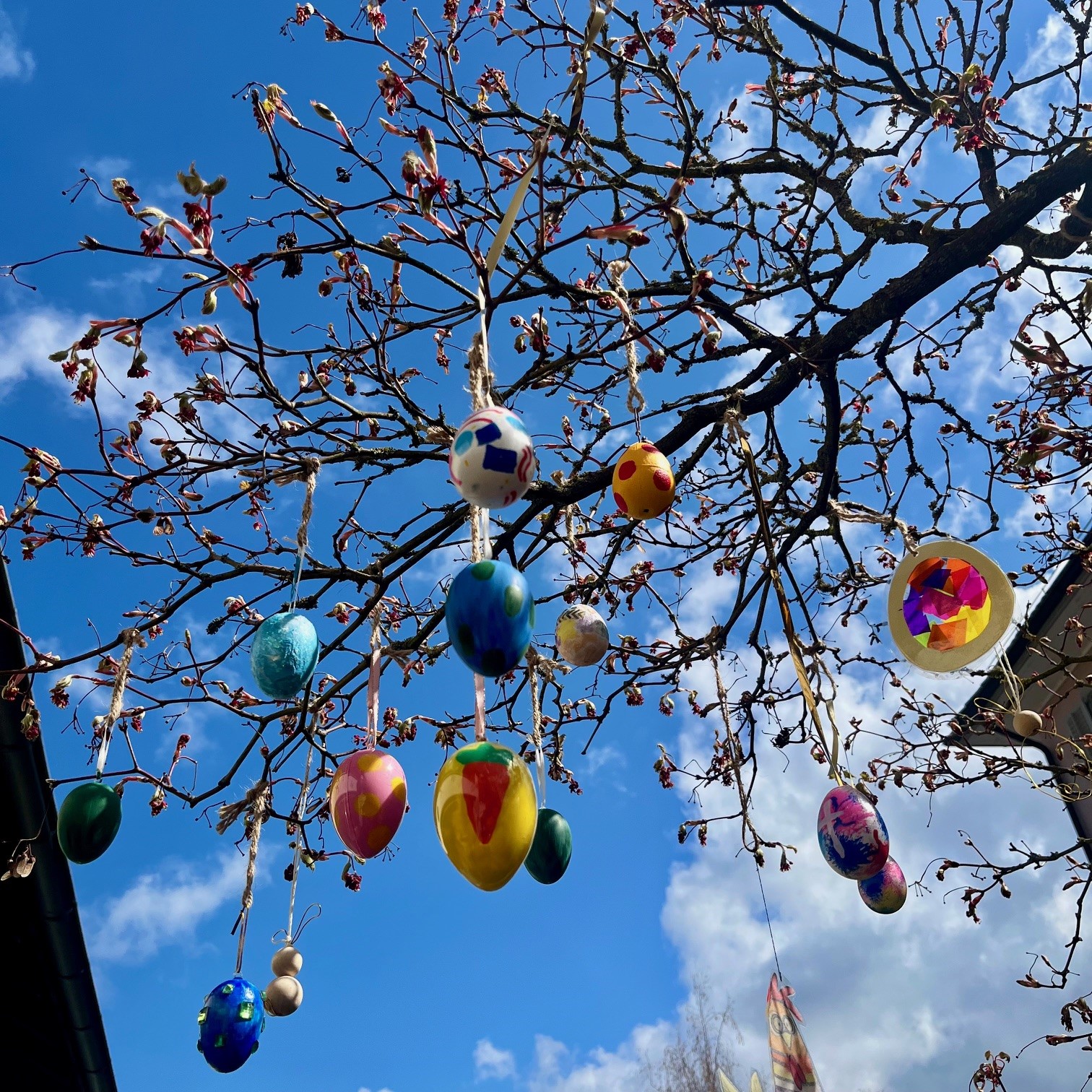 Passion und Ostern – die Geschichte hat viele traurige Stellen. Dennoch, sie hat ein schönes Ende und zeigt uns, welche tiefere Bedeutung Ostern in unserer Tradition hat. Auch in einer schwierigen, aussichtslos erscheinenden Lage ist ein Neuanfang möglich. Diese Hoffnung und die damit verbundene Lebensfreude wollen wir mit den farbenfrohen Osterbäumen auf dem Kirchenhügel zum Ausdruck bringen. Lassen Sie sich anstecken und gestalten Sie sich Ihren eigenen Osterbaum zu Hause. Alle Sujets, die im hinteren Teil der Kirche im Hanfsamen hängen, sind selbstgemachte Geschenke aus den Vorjahren und können kostenlos mitgenommen werden.
